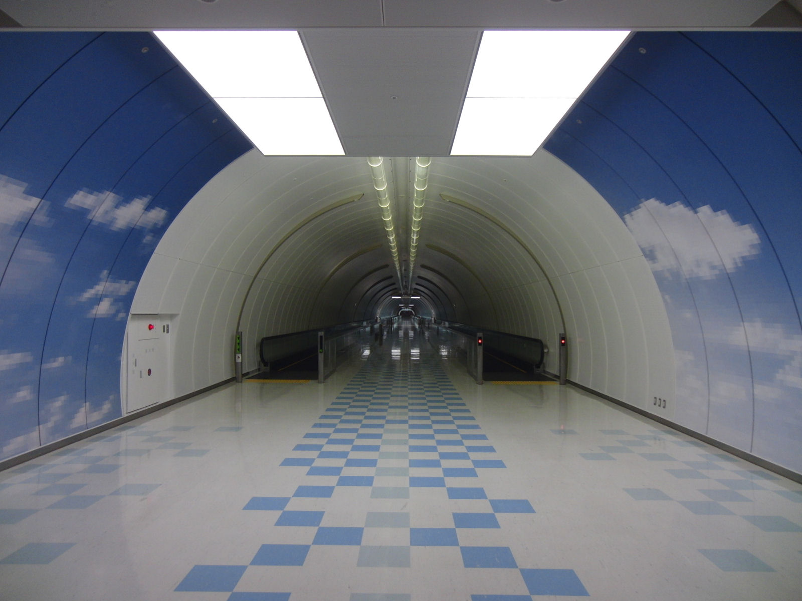成田で出国手続きしてから次の飛行機の乗り場まで300m程移動する必要あり.こちらは地下の通路.