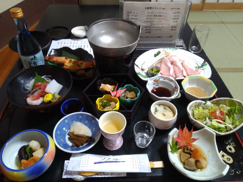 めずらしいのは源泉を使ったお湯で食べる豚のしゃぶしゃぶです.