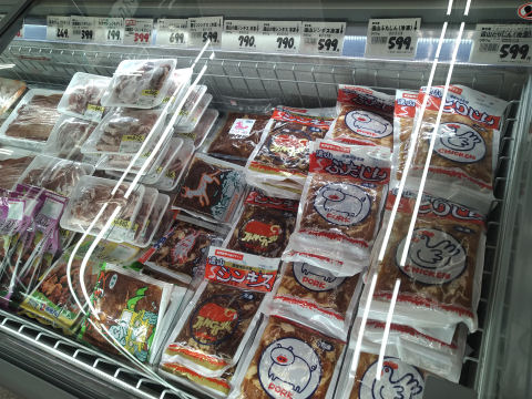 冷凍食品コーナーを見たら猪肉や鹿肉や馬肉のジンギスや,マトンが売っていました.