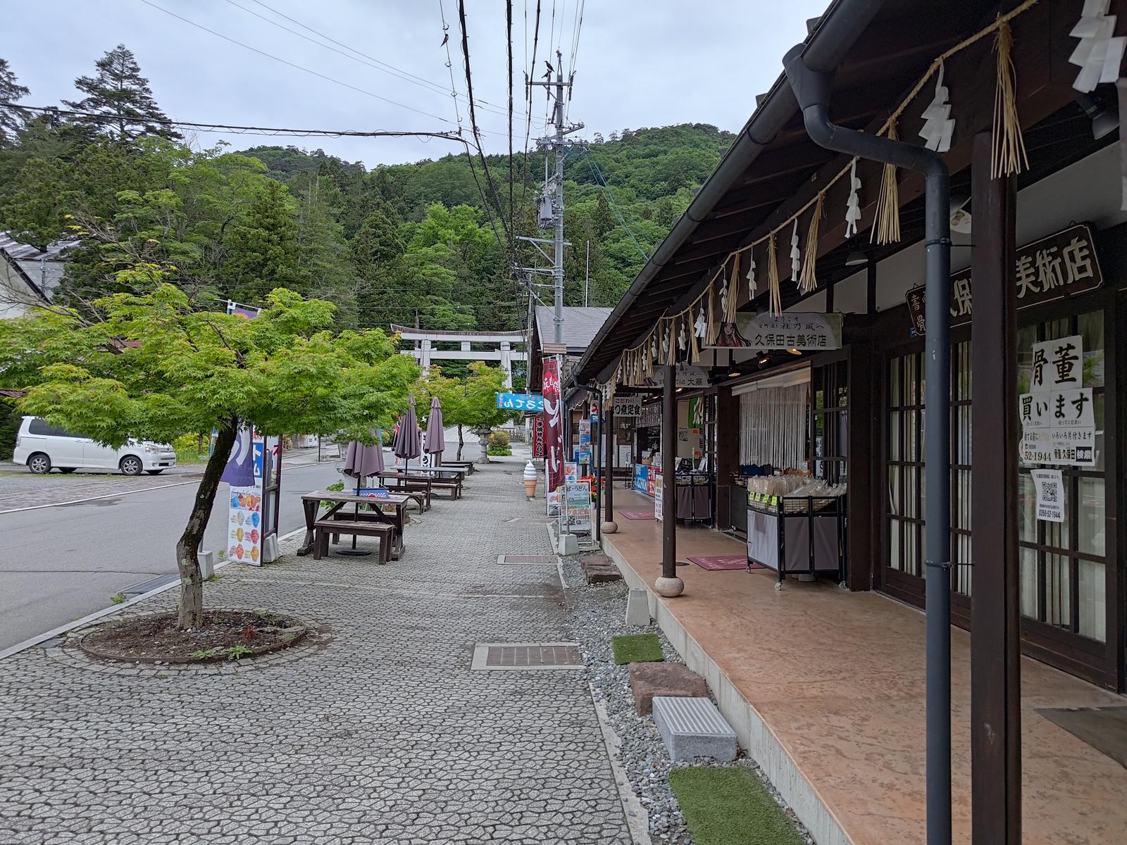 この日は温泉宿に素泊まりする予定で,夜食としてお焼きの売っているところを探して立ち寄ったところ,そこはは諏訪大社上社の前の土産屋のひとつでした.