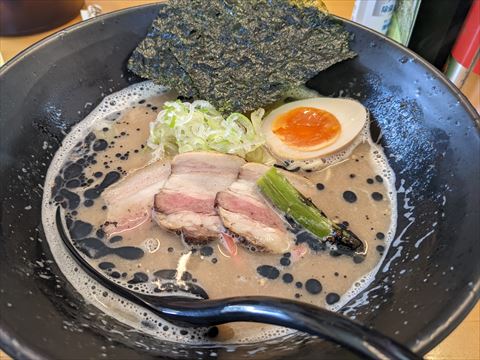 今回食べた猪骨ラーメン.猪の骨でだしをとり,チャーシューは猪の肉です.