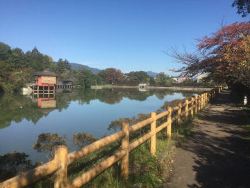 夜に飲み会があるので今日は八条ヶ池の道を歩いていくと,桜の葉などの紅葉が始まっていました.