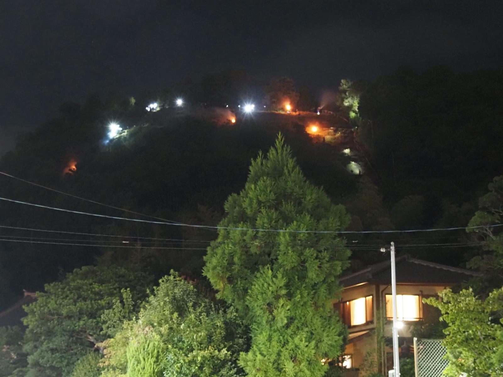 金閣寺付近の左大文字は車中から建物の隙間からわずかながら間近に見ることができました.