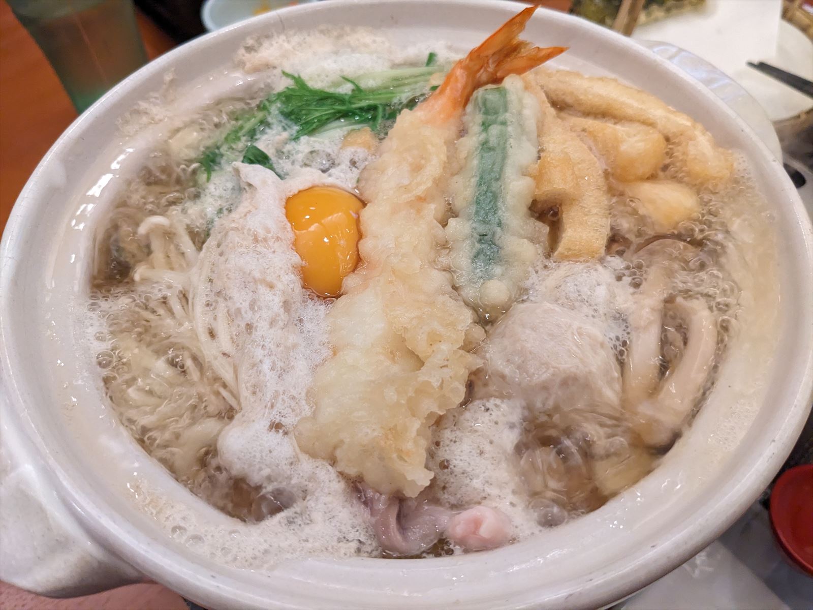 遅い昼食だったためあまり腹が減っていない中夕飯を食べに行った和食さとで頼んだのは鍋焼きうどん.