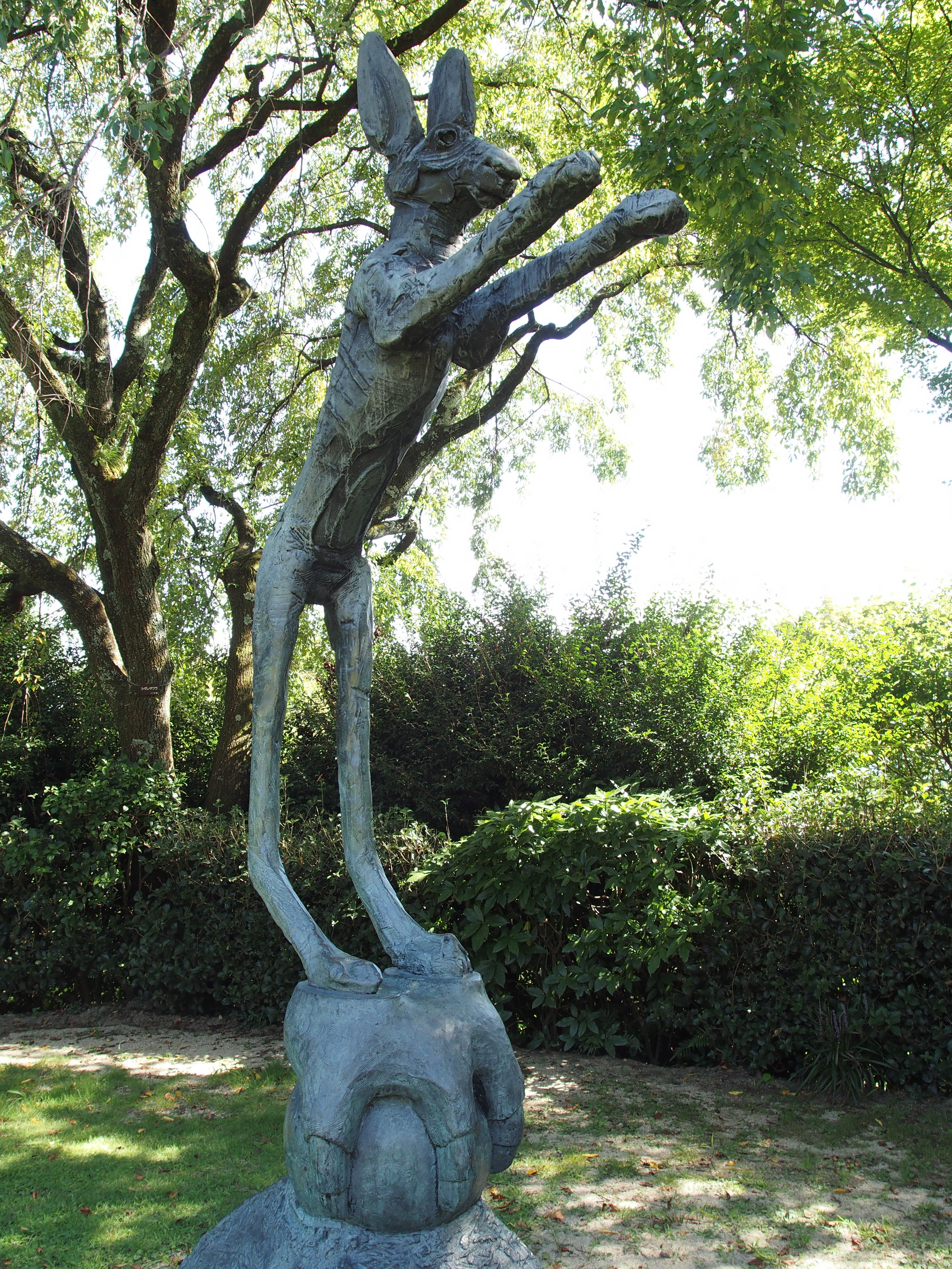 写真はアサヒビール大山崎山荘美術館の庭園にあった,妙にひょろ長いウサギの像.