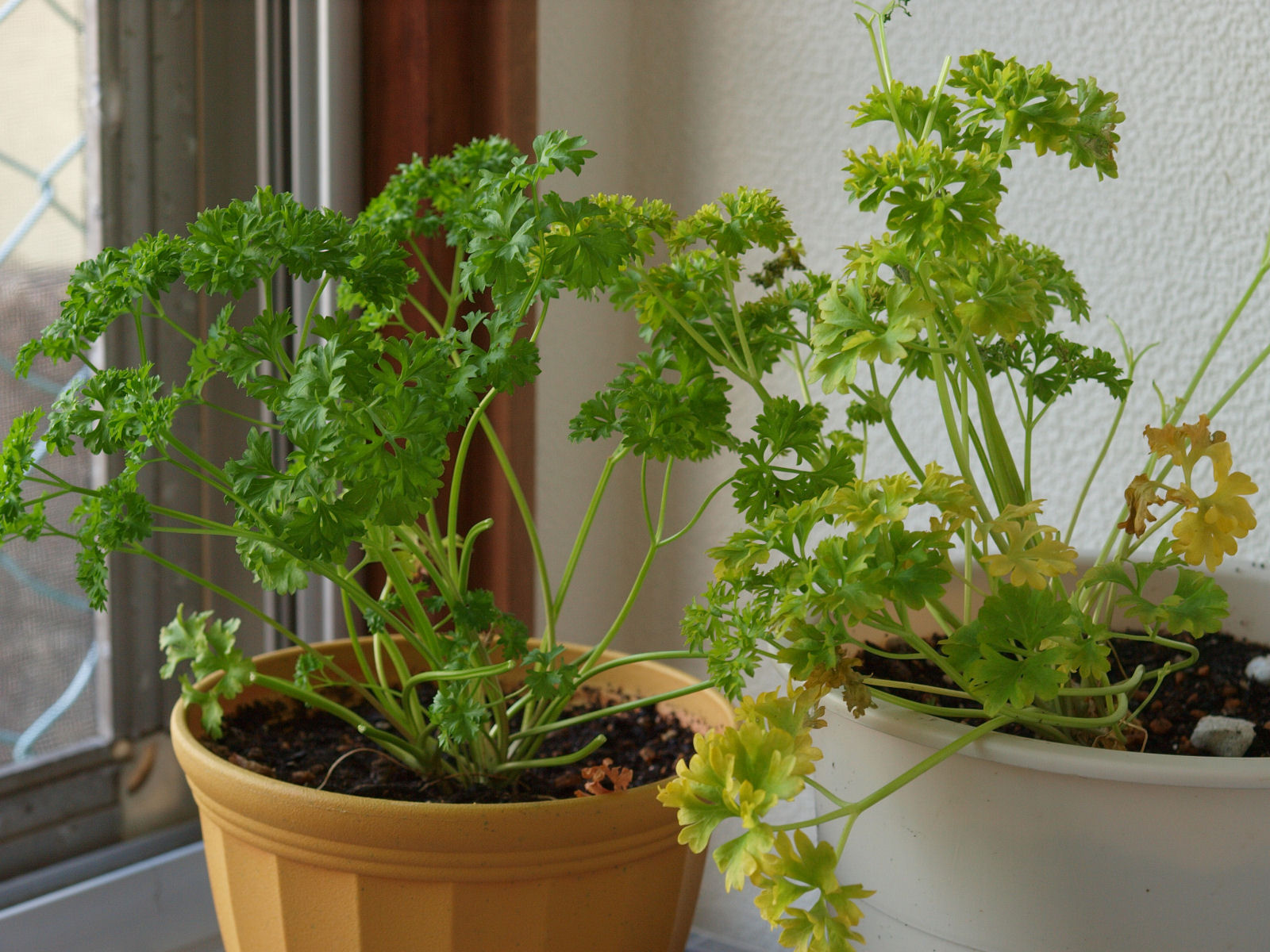 東のパセリは成長したのか鉢からはみでていたため,しばらくしてその部分を摘んで食べました.