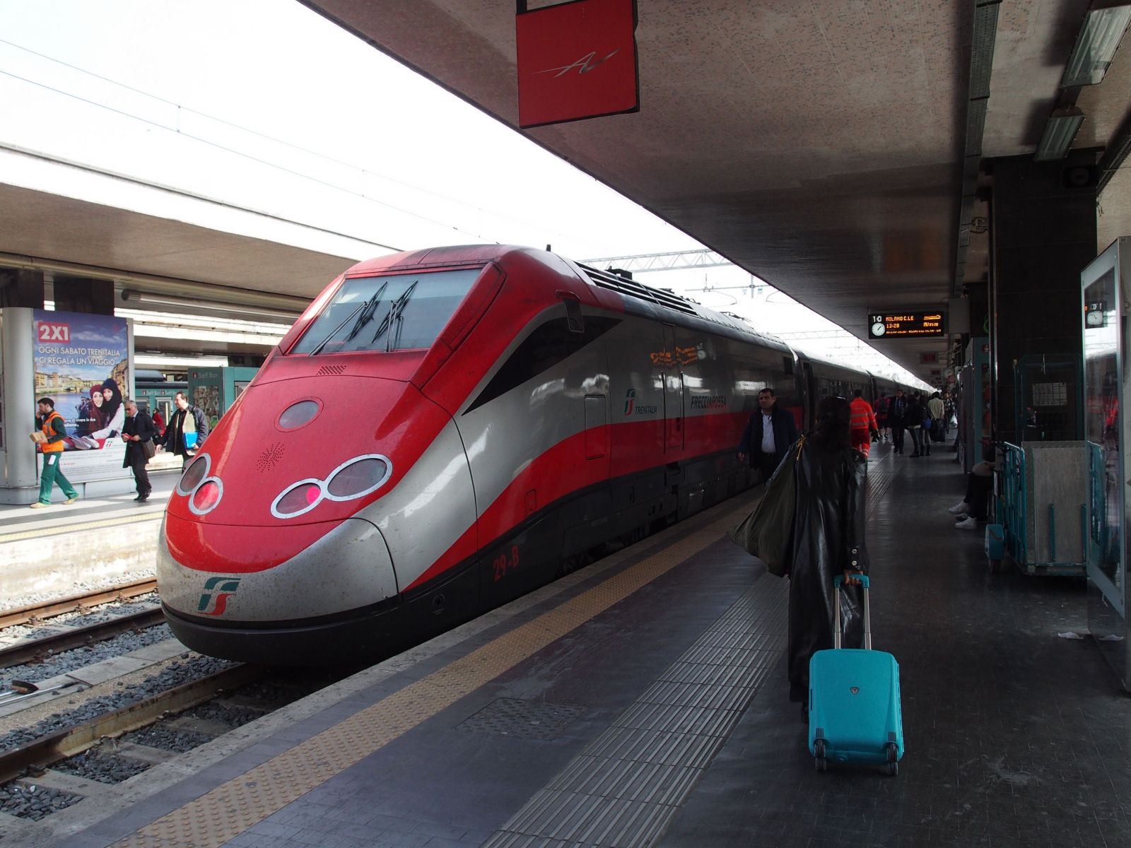 この日の電車もFrecciarossaでしたが,今度は2等車に乗りました.1等車と比べると席は狭く,バックパックが近くにおけないため,乗降口付近の荷物棚に置きました.ガイドブックに荷物が持ち去られるケースがあると書いてあったため若干心配でしたが,無事荷物とともにヴェネツィアに着きました.