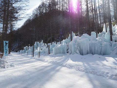 途中にある愛知県稲武の湧水広場の氷瀑を見に行きました.