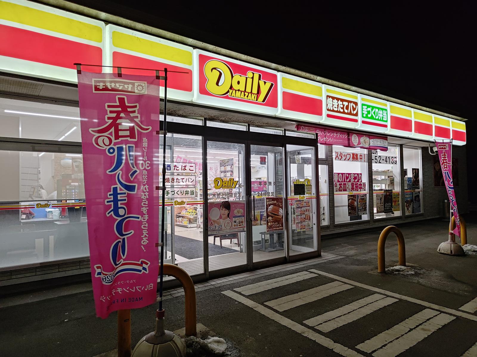 諦めてコンビニに行きました.セブンイレブンとデイリーヤマザキがありましたが,店内調理がありそうな後者へ行きました.